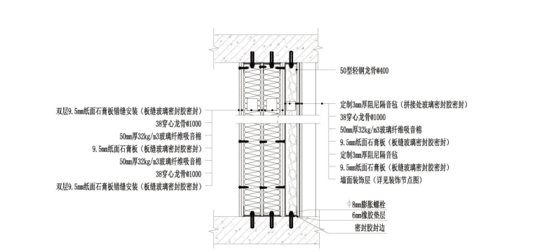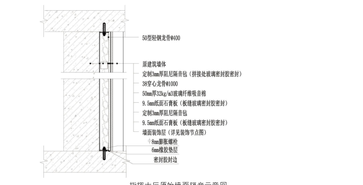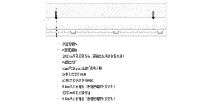 指挥大厅新建隔音墙体示意图